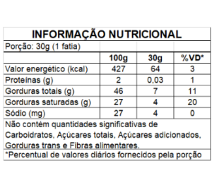 Ingredientes: Creme de leite pasteurizado padronizado com no mínimo 45% de gordura, espessantes e estabilizantes: Carragena (INS 407) e Goma guar (INS 412).